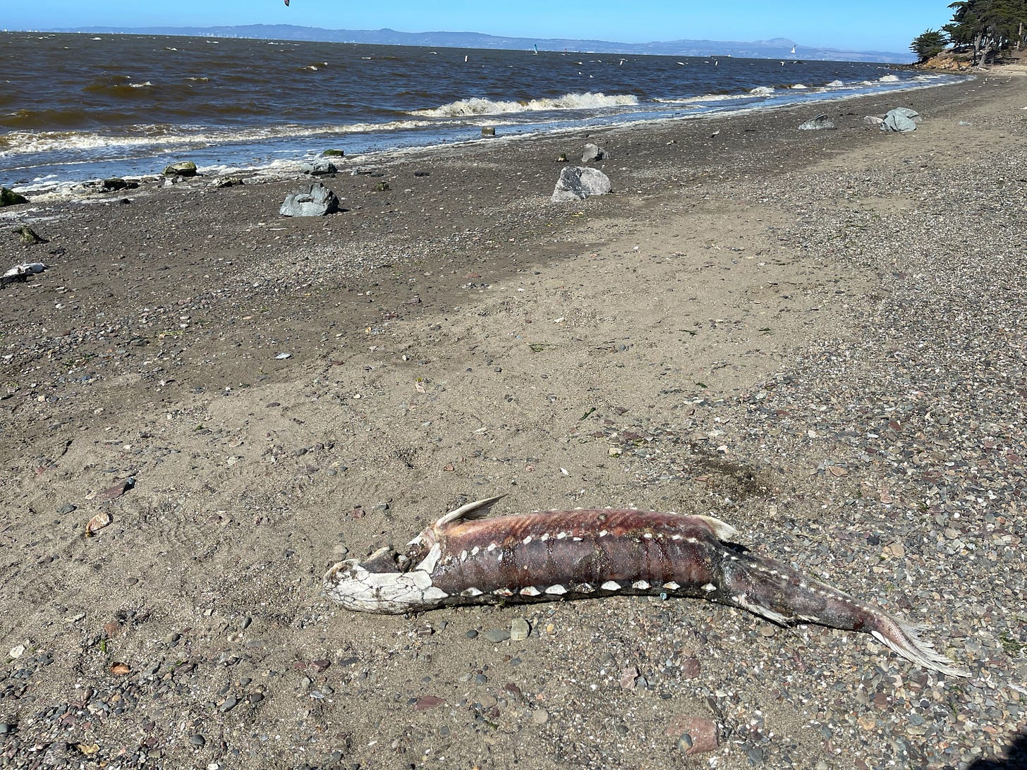 On Sunday August 28th, my phone blew up with reports of dead fish lining the shores of San Francisco Bay. San Francisco Baykeeper had been tracking a harmful “red tide” algae bloom since late-July. Given what we understood of the specific algae causing this bloom and the vast expanse of San Francisco Bay it now covered, we knew a substantial fish kill was possible. But nothing could have prepared us for the sight of hundreds of sturgeon and striped bass washing up on beaches, or schools of smaller fishes gasping for air. San Francisco Bay has not experienced such a prolonged or widespread algal bloom or a fish kill this devastating in recorded history.