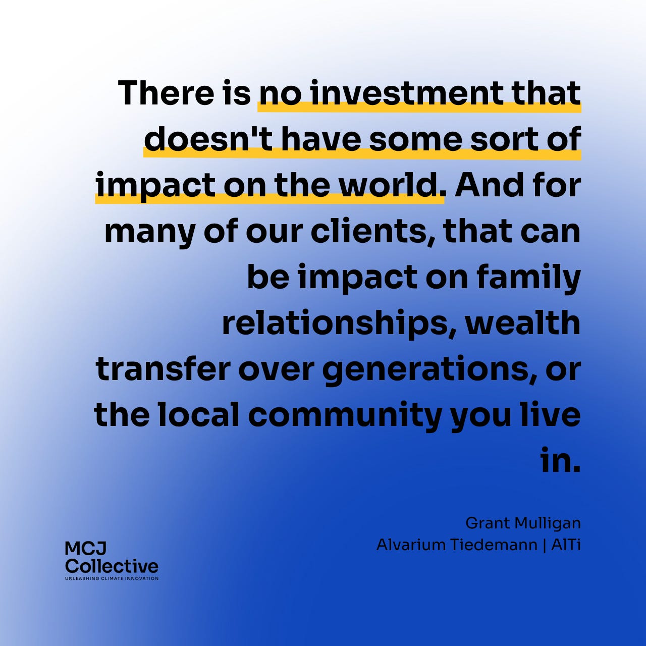 As an institutional investor, AlTi is serious about impact. And Grant focuses specifically on the firm’s net-zero strategies and nature-based solutions. This conversation takes a fascinating dive into their approach, their origin story, how they measure impact, and how they allocate capital across many different asset classes. We also discuss the types of clients who prioritize impact investing and how this landscape is evolving over the past few years and into the future. Tune in to learn more about AlTi's mission to create enduring value.