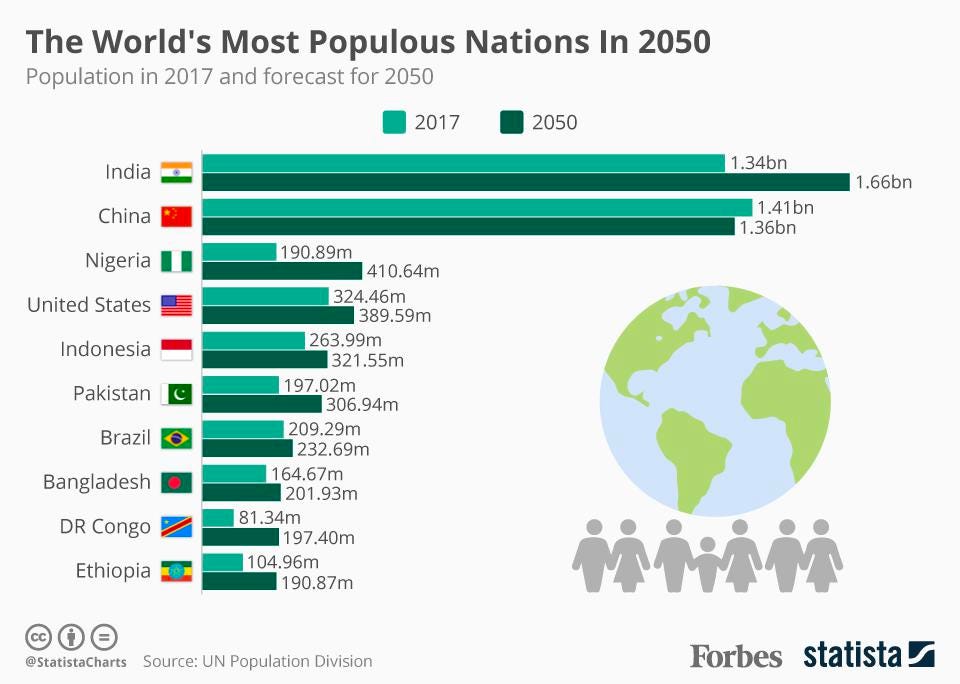 By 2050, ten countries are projected to account for over half of the expected 9.8 billion global population, and the vast majority of them will be those in the Global South.