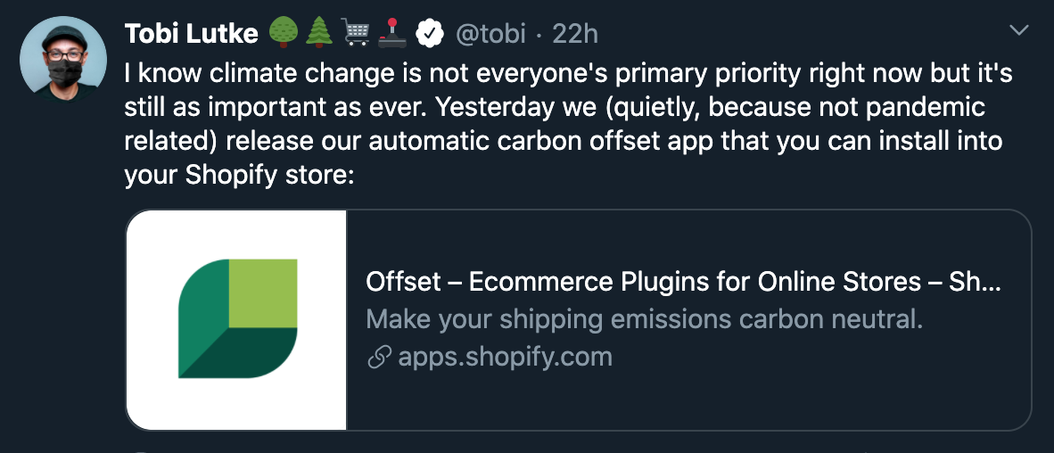 In exciting news, Shopify Founder & CEO, Tobi Lutke, recently announced the launch of an app called Offset, that will enable Shopify’s merchants to monitor and mitigate the emissions impact of their shipping activities.