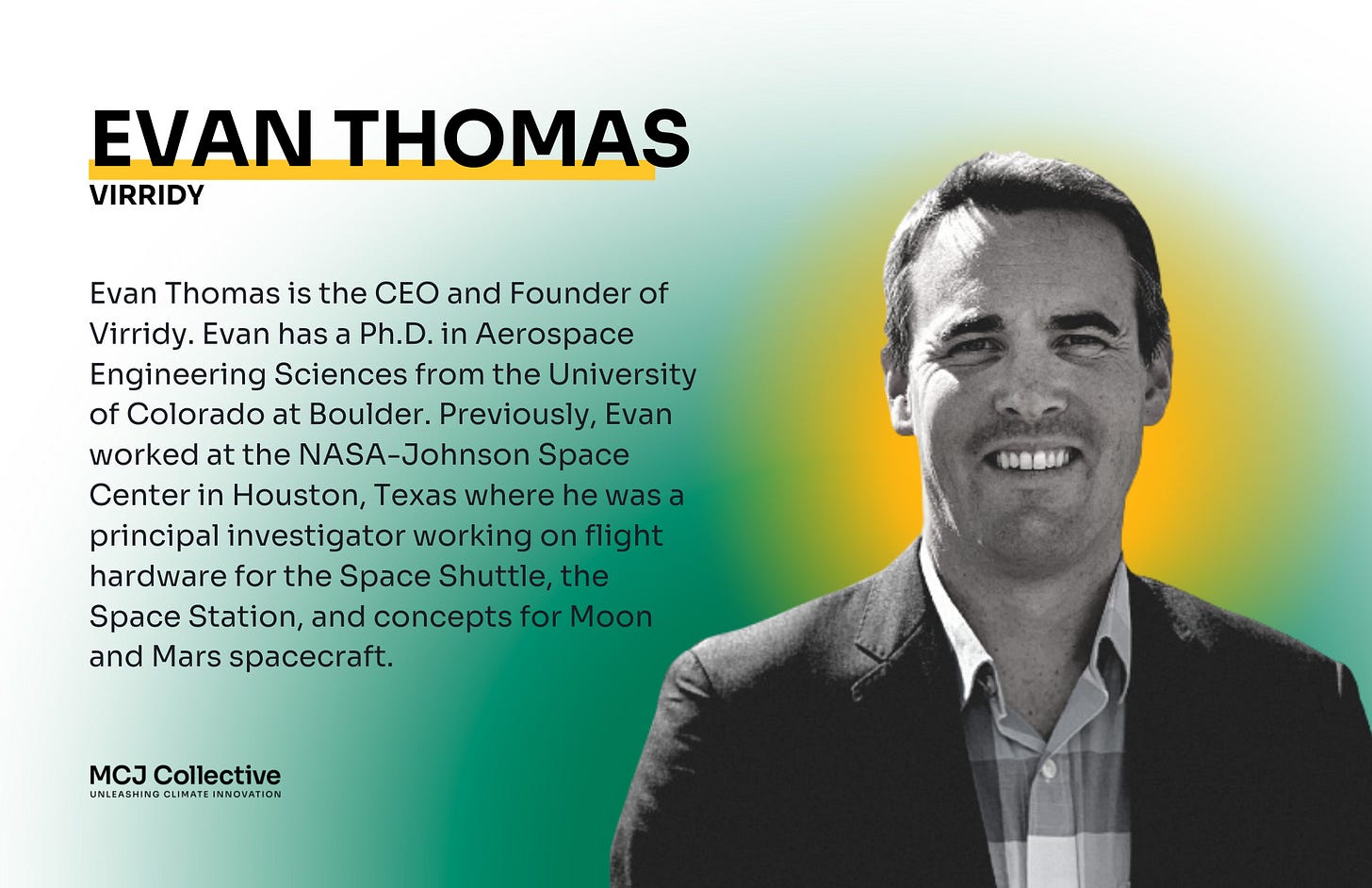 Today's guest is Dr. Evan Thomas, CEO and Founder of Virridy, and Director of the Mortensen Center in Global Engineering & Resilience and the Climate Innovation Collaboratory at the University of Colorado in Boulder. Evan is also a tenured Associate Professor in the CU Boulder Civil, Environmental and Architectural Engineering Department. So, he’s a busy guy.